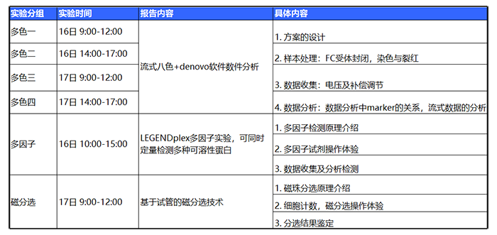 *注:請注意多色一、二、三、四為同一實驗,請根據自己的時間報名,請勿重復報名。上機實訓多色實驗擬招40人,多因子實驗與磁分選實驗分別擬招10人