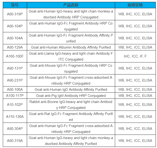 Bethyl 二抗熱賣產品列表