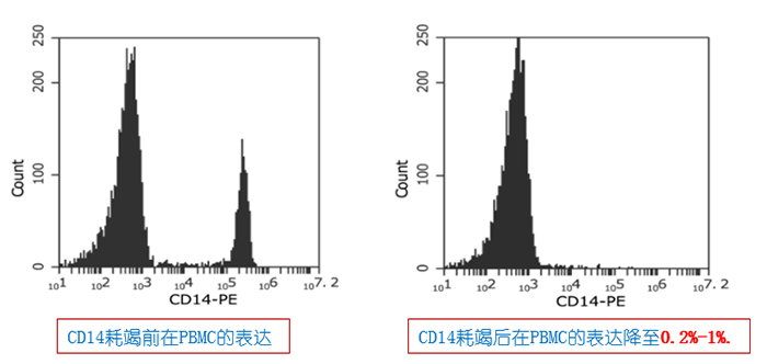 例2:pluriSpin? Human MonocyteDepletionCat#19-01002-31),耗竭之后單核細胞在PBMC的表達降至0.2%-1%.:
