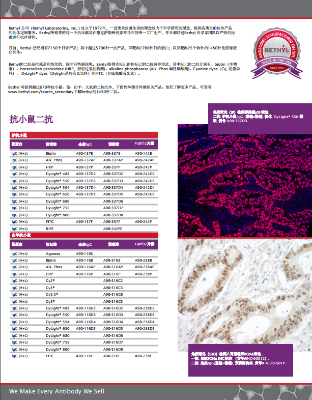 Bethyl 二抗產品冊
